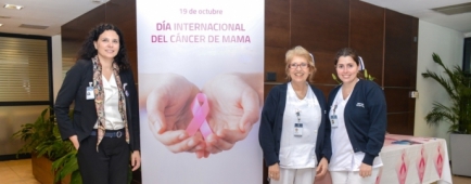 Anualmente en el mes de octubre se conmemora el Día Mundial de la Lucha Contra el Cáncer de Mama, mediante el cual se busca sensibilizar a la sociedad sobre esta enfermedad brindando información sobre los principales factores de riesgo y las medidas más eficaces para prevenirlo. En este sentido la información constituye el primer paso para combatir el cáncer de mama. El equipo de Oncología del Hospital Británico se adhirió a esta campaña ofreciendo, durante la semana del 16 al 20 de octubre, charlas incidentales a visitantes ocasionales en el hall de Policlínico Morales, recordando a las usuarias la importancia de realizar controles anuales con el ginecólogo tratante como principal método de prevención de esta enfermedad. El día 19 de octubre, en ocasión del Día Mundial contra el Cáncer de Mama, el equipo de la Unidad de Oncología invitó a todas sus usuarias a un encuentro en el cual compartieron con invitados especiales temas tales como dieta saludable, cosmetología y maquillaje, relajación y respiración, brindando nuevas herramientas para luchar contra esta enfermedad. ¡Muchas gracias a quienes se acercaron a compartir esta jornada!