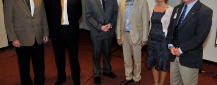 De izquierda a derecha: Martin Wells, Embajador Benjamin Lyster-Binns, Prof Dr Max Watson, Prof Dr Henry Cohen, Mag Elisa Martínez, Prof Adj Dr Jorge Stanham.