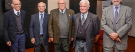 De izquierda a derecha: Dr. José Espasandín, Dr. Enrique Fossati, Sr. Winston Willans, Dr. Jorge Stanham y Prof. Dr. Abel González (Argentina).