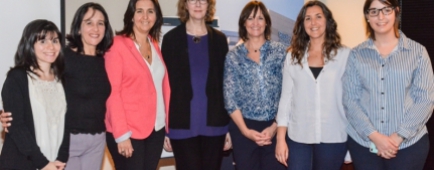 De izquierda a derecha: Lic. Enf. Isael Sogliano, Dra. Rosanna Raina, Lic. Ps. Elena Bernadá, Dra. Julie Hauer, Dra. Joyce Stewart, Lic. Ft. Natalia Batista, Adm. Maria Jose Viera