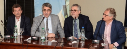 De izquierda a derecha: Dr. Gregorio Jaimovich, Dr. Ephraim Fuchs, Dr Leo Luznik y Dr. Raúl Gabús